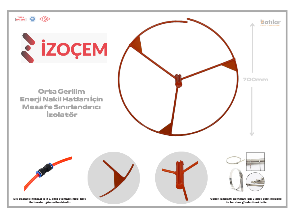 İzolasyon çemberi havai hatlarda iletkenlerin birbirleri yaklaşımlarını güvenli mesafede tutmak için geliştirilmiştir. Arazide bulunan elektrik direklerinde direk mesafeler, kol açıklıkları kablo gergi hatalarını giderecektir. Bu sayede elektrik atlama ve kısa devre akımlarını en aza indirecektir.